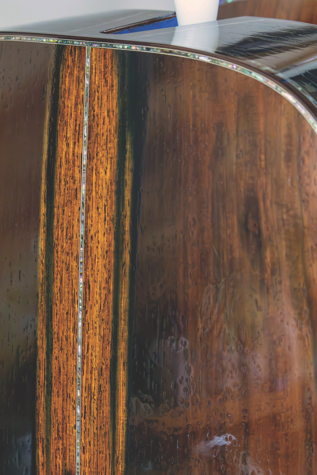 "Ancient kauri is so unique that there isn’t a true comparison to a familiar wood. I’m not even sure that it’s still wood after 45,000 years. I know it’s not petrified or fossilized. It’s very hard to bend. I’m confident of its structural stability because there are kauri instruments dating back millennia. “One might not assume it would make a great-sounding guitar, but it does. It’s akin to a warmer-sounding mahogany.