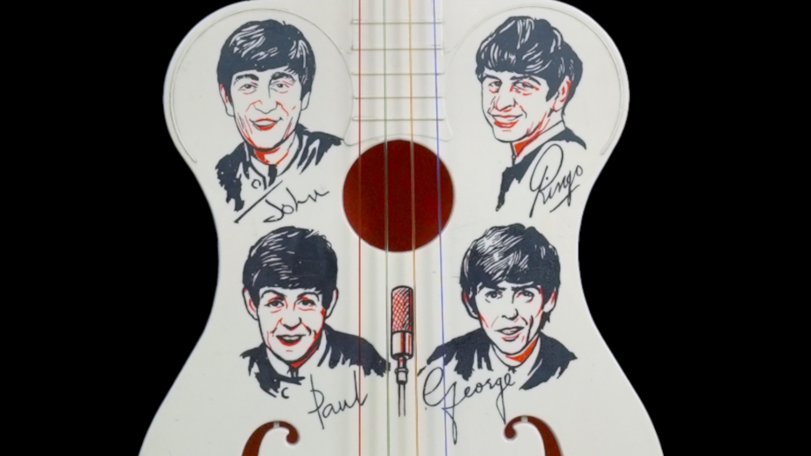 What’s truly bizarre is that this toy “New Sound Guitar,” as Selcol called it, is playable and sounds quite good. That’s surprising not only because it’s made of plastic but also because it’s a novelty made simply to cash in on the Beatles boom.