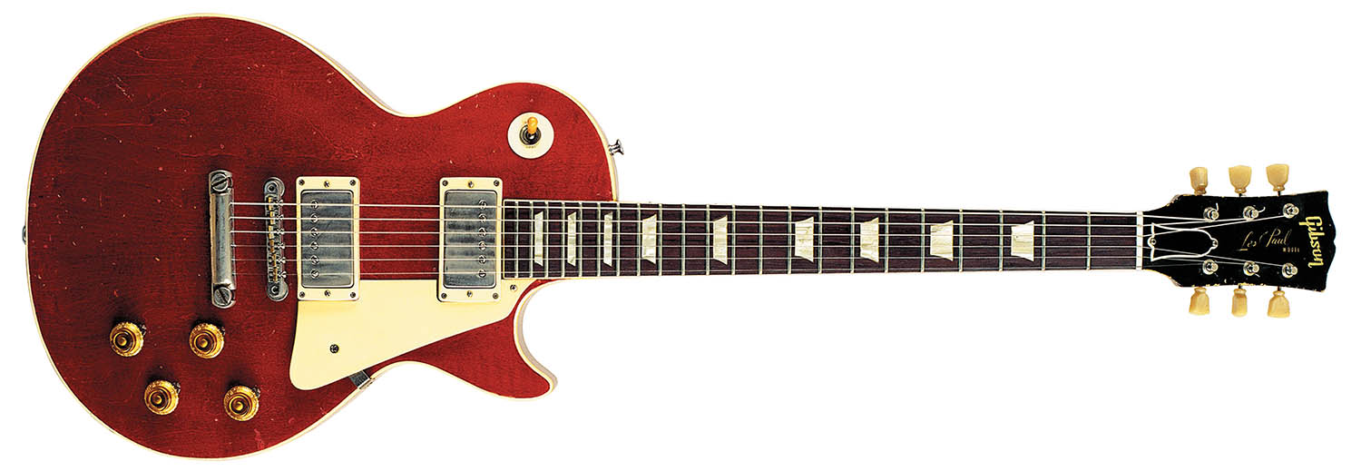 One of the most storied guitars in Harrison’s collection, this former goldtop 1957 Les Paul was a gift from Eric Clapton, who gave it to Harrison in August 1968 during the White Album sessions.