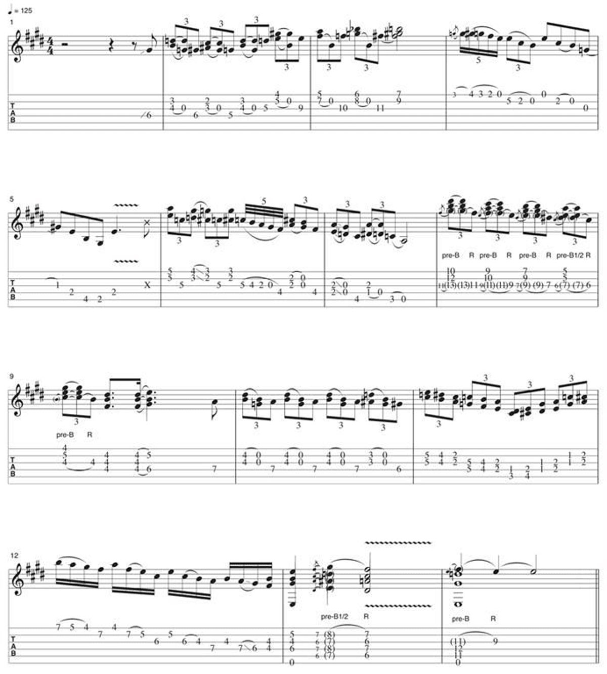 The 4th bar includes a half-step prebend, which is one of my calling cards along with some open-string pull-offs.