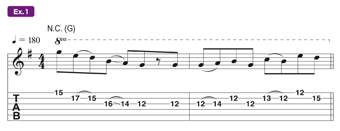 Looking at Ex. 3, a reworking of what the guitarist plays at the beginning of his “Ramblin’ Man” solo, you can see two key elements on display.