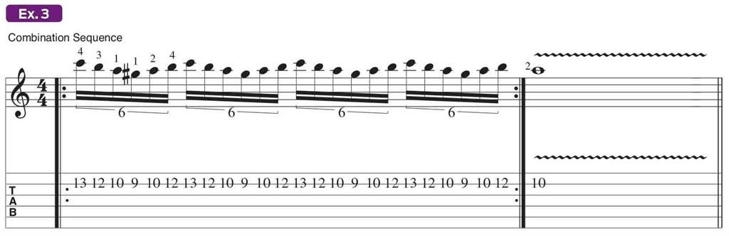 Example 3 features a mixture of these two ideas, and it delivers an authentic Yngwie scale sequence as these descending and ascending concepts are combined.