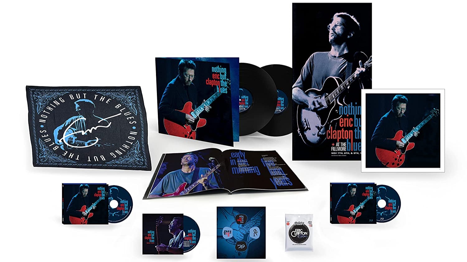 Also included in this fan’s treasure trove is a hardcover book, a numbered lithograph, a 12x24 poster, a set of Clapton guitar strings, custom guitar picks, and an exclusive bandana.