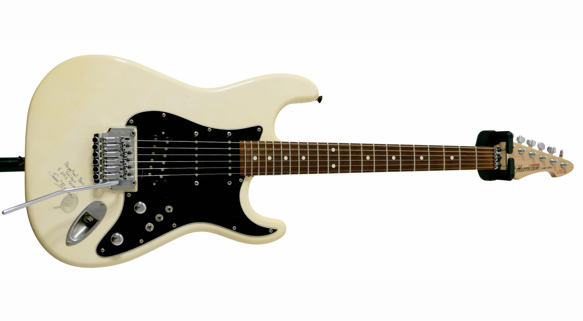 The white Moridira Hurricane model Becker held on the cover of Speed Metal Symphony – his first album with Cacophony, his duo with Marty Friedman – was sold for $85,000.